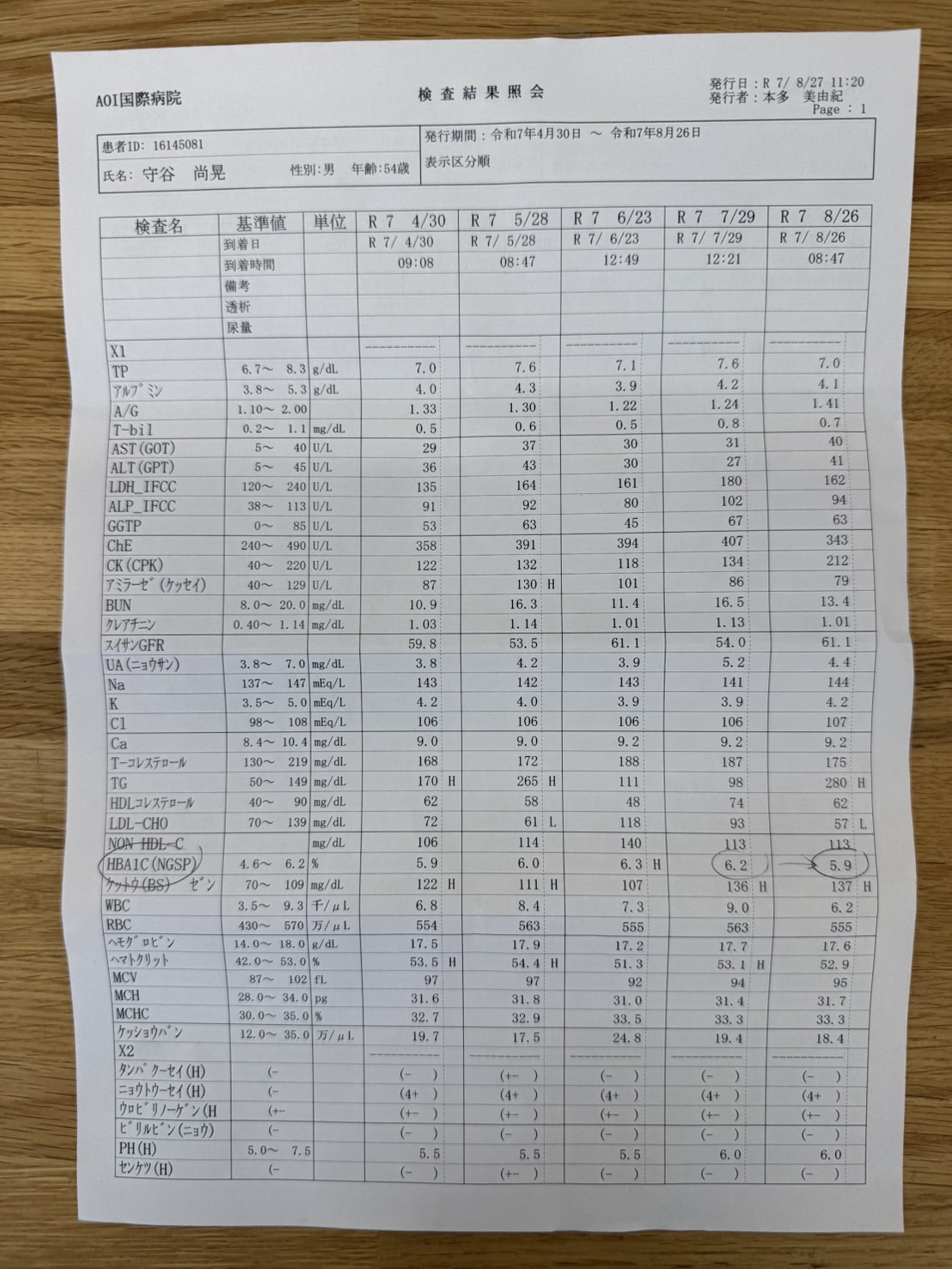 真面目な話、父は毎月こうして病院に通い、自分の体をデータで管理しています。